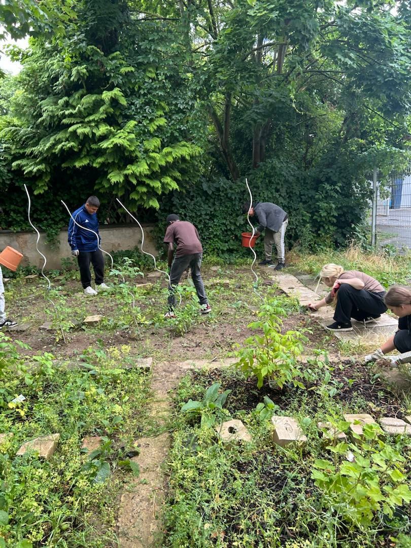 Eine weitere Besonderheit in der Erprobungsstufe der Jahrgänge 5/6 ist die Arbeit in unserem Schulgarten. Hier wird gemeinsam mit der GemüseAckerdemie gesät, gearbeitet und geerntet.