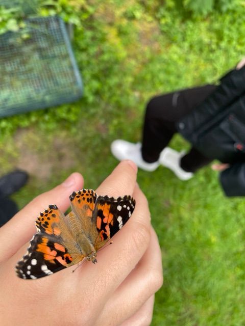 In diesem Frühling hat die Klasse 6a ihre eigenen Schmetterlinge gezüchtet: "Dafür haben wir 2 Becher mit Raupen besorgt. Insgesamt waren 7 lebende Raupen in jedem Becher mit Raupenfutter. Dazu gab es ein Schmetterlingshabitat, etwas Zubehör und vollständiges Informationsmaterial. Die Kinder konnten gut die Raupen beim Fressen, Verpuppen und schließlich beim Schlüpfen der Distelfalter beobachten. Zum Schluss konnten wir die bunten Schmetterlinge gemeinsam freilassen. Ein rundum gelungenes Klassenprojekt."